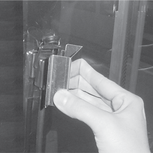 Hook the shelf brackets in the slots in the back, interior of unit. See images in Installing or Replacing the Shelf for proper slot arrangement for either 2, 3 or 4 shelf units.