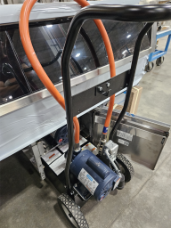 Roll the oil disposal shuttle under the fryer until it stops. Make sure the fryer’s drain aligns with opening in shuttle.