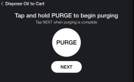 Tap Next, and then continue at Disposing of Oil into Disposal Container. DO NOT press Purge at this time.