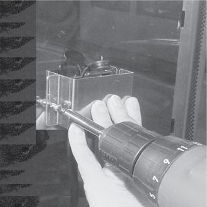 Using a crosshead screwdriver, remove the screw securing the shelf plug cover and remove the cover.