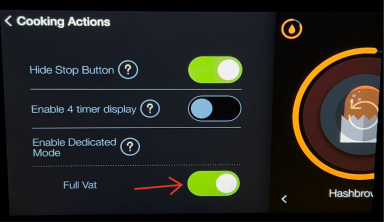 Disabling Dedicated Mode switches the equipment to Undedicated Mode (Flex vat), giving you the flexibility to cook different products on either side. This is especially helpful for operations that need to adapt quickly to volume changes.